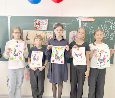 Яркие петушки, доблестные кони и пышные цветочные букеты — всё это волшебный мир городецкой росписи, одного из самых знаменитых народных промыслов России. Школьникам предложили на один день стать настоящими народными мастерами и своими руками создать солнечный узор в лучших традициях Городца.