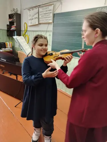 3 марта 2026 г. в нашей детской школе искусств состоялся увлекательный мастер‑класс, посвящённый одному из самых выразительных музыкальных инструментов — скрипке. Мероприятие собрало учащихся, увлечённых музыкой и желающих узнать больше о «королеве оркестра». Ребята совершили настоящее путешествие во времени — познакомились с историей возникновения скрипки: узнали о её предшественниках: индийской лире, арабском рабабе, польской скрипице и других древних инструментах; проследили путь от народного инструмента до «аристократки» симфонического оркестра; услышали о великих мастерах, создававших скрипки: Андреа Амати, Антонио Страдивари и Джузеппе Гварнери; узнали интересные факты — например, что до 1750 года струны делали из овечьих кишок, а самые дорогие скрипки сегодня оцениваются в десятки миллионов долларов.