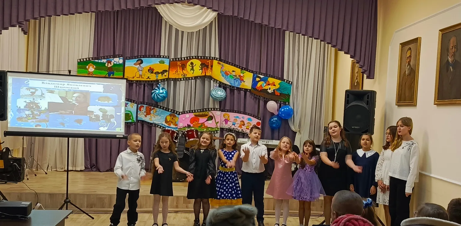 12 декабря 2025 г. вся страна вспоминала удивительно талантливого, жизнерадостного человека, композитора Владимира Яковлевича Шаинского. В этот день ему исполнилось бы 100 лет! Но его песни навсегда остаются в наших сердцах. 12 декабря в ДШИ состоялся концерт, посвящённый 100-летию со дня рождения В.Я. Шаинского «От улыбки хмурый день светлей». Преподавателями класса изобразительного искусства О.Н. Новиковой и Е.Н. Гвоздевой заранее было подготовлено оформление сцены. Концерт прошел на одном дыхании. Ведущая программы, преподаватель теоретических дисциплин Ольга Михайловна Пчельникова рассказала много интересных фактов из жизни композитора. В программе концерта прозвучали знакомые песни и мелодии В. Шаинского. И неудивительно было, когда подпевал весь зал, аплодируя юным участникам концерта. Приятно было видеть после концерта искренние улыбки зрителей, слышать слова благодарности. В этом сила творчества замечательного композитора Владимира Яковлевича Шаинского. С днём рождения, Маэстро!